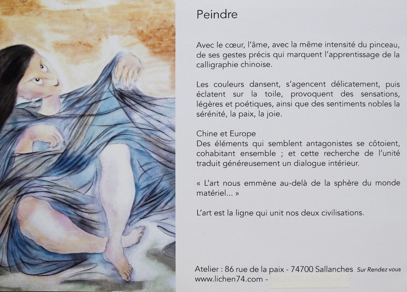 Depuis 2008 s’ inscrit à la maison des artiste , ouvert l’atelier calligraphie et peinture chinoise à SALLANCHES.